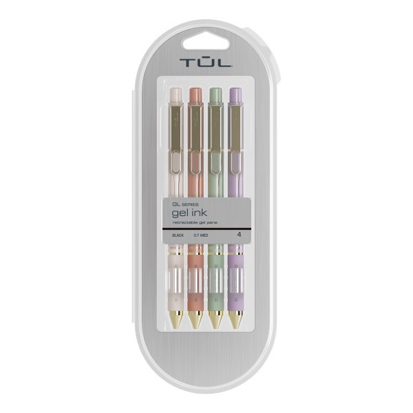 slide 6 of 6, TUL® GL Series Retractable Gel Pens, Medium Point, 0.7 mm, Assorted Barrel Colors With Gold Lines, Black Ink, Pack Of 4 Pens, 4 ct