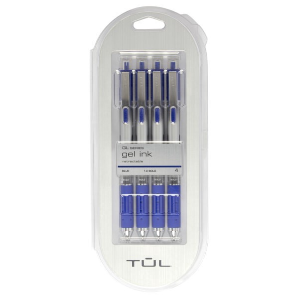 TUL Retractable Gel Pens, Bold Point, Silver Barrel, Blue Ink, Pack Of 4 Pens