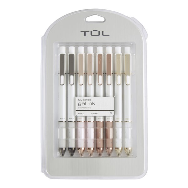 TUL Retractable Gel Pens, Mixed Metals, Medium Point, 0.7 Mm, Pearl White Barrel, Black Ink, Pack Of 8 Pens