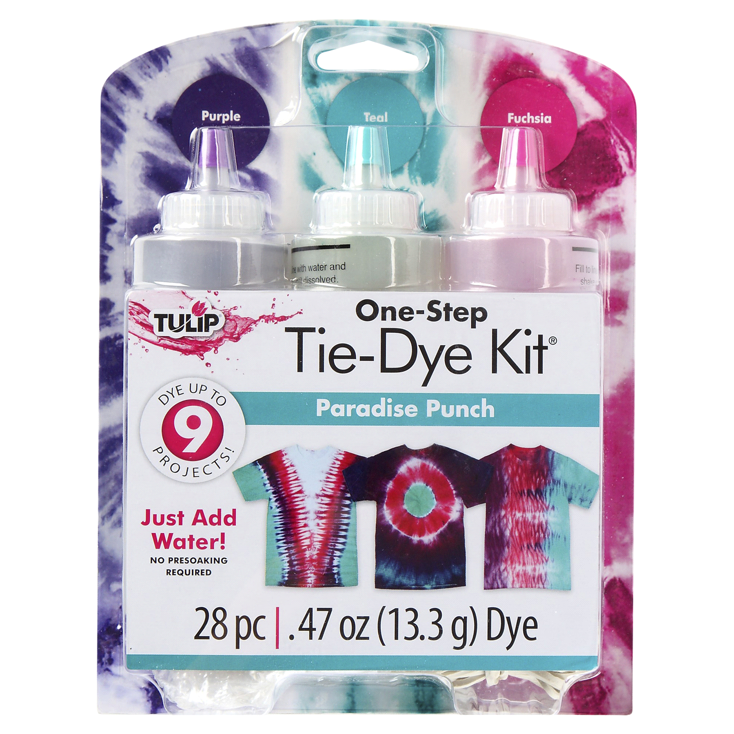 The Tulip OneStep Paradise Punch TieDye Kit is full of colorful fun Stocked with 3 bottles of vibrant OneStep Dye, supplies and an inspiration guide, this kit is ready for your creativity. Who knew ti…