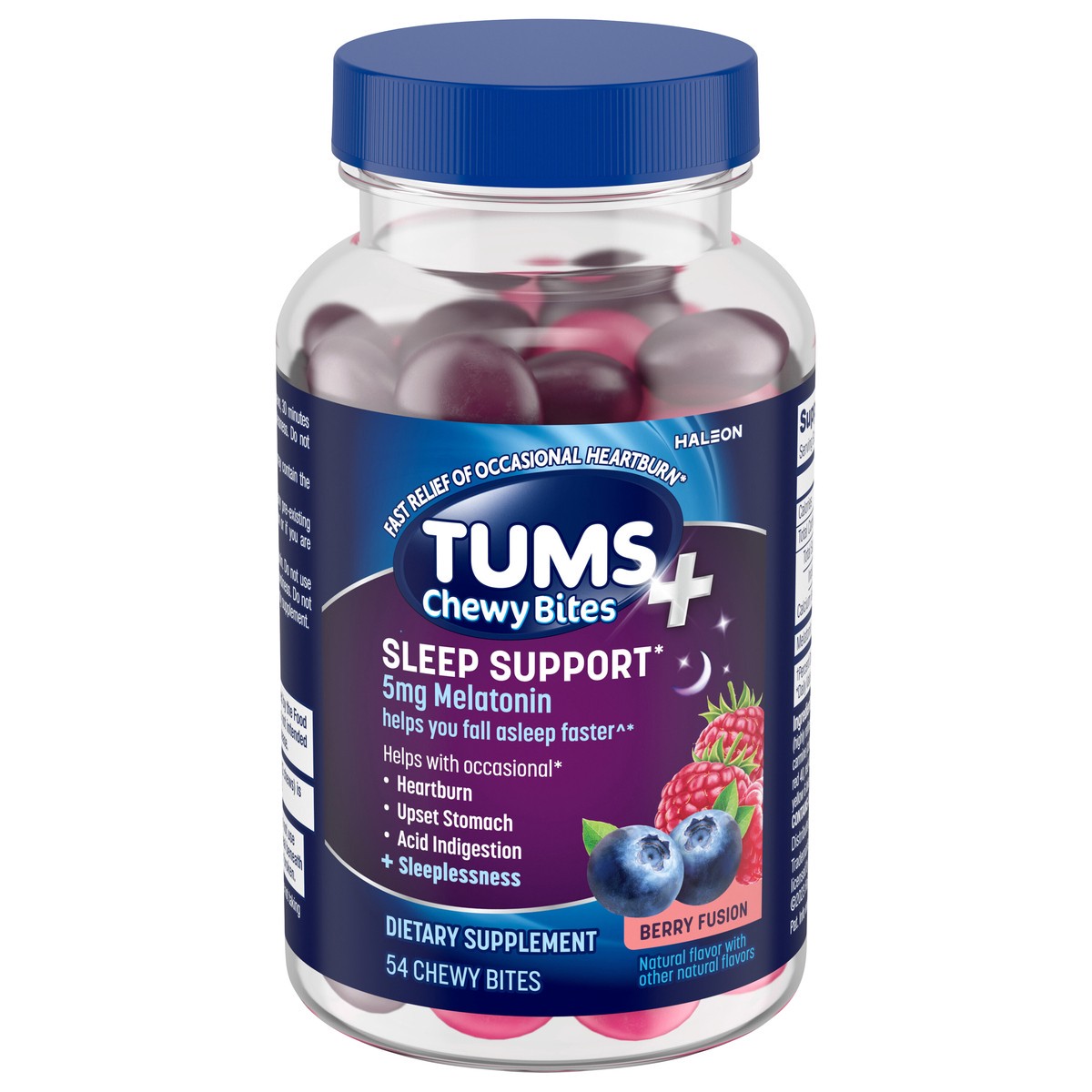 TUMS+ Heartburn+ Sleep Support Chewable Tablets offer fast relief of occasional heartburn and includes 5 mg of Melatonin for sleep support (1,2,3). (1) 600mg of elemental calcium per serving (2 chews) …