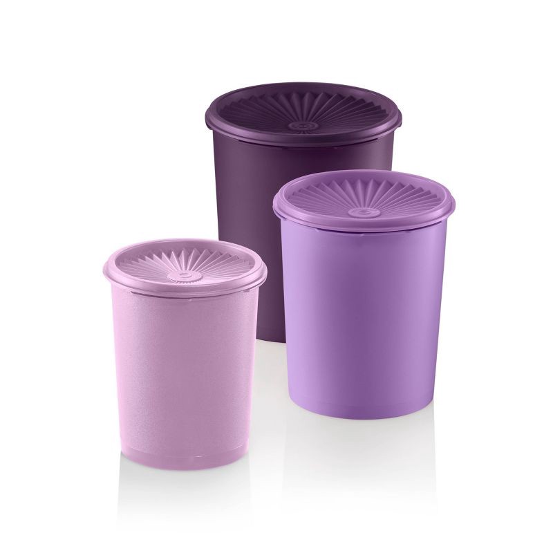 Tupperware Heritage 3pk Plastic Canister Set Purple