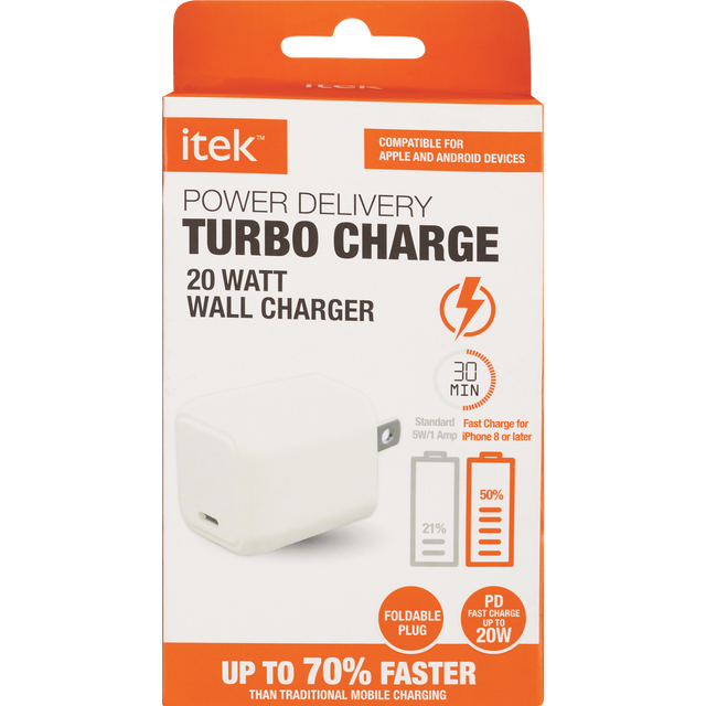 slide 1 of 1, Turbo Charge-20W Wall Charger-White, 1 ct
