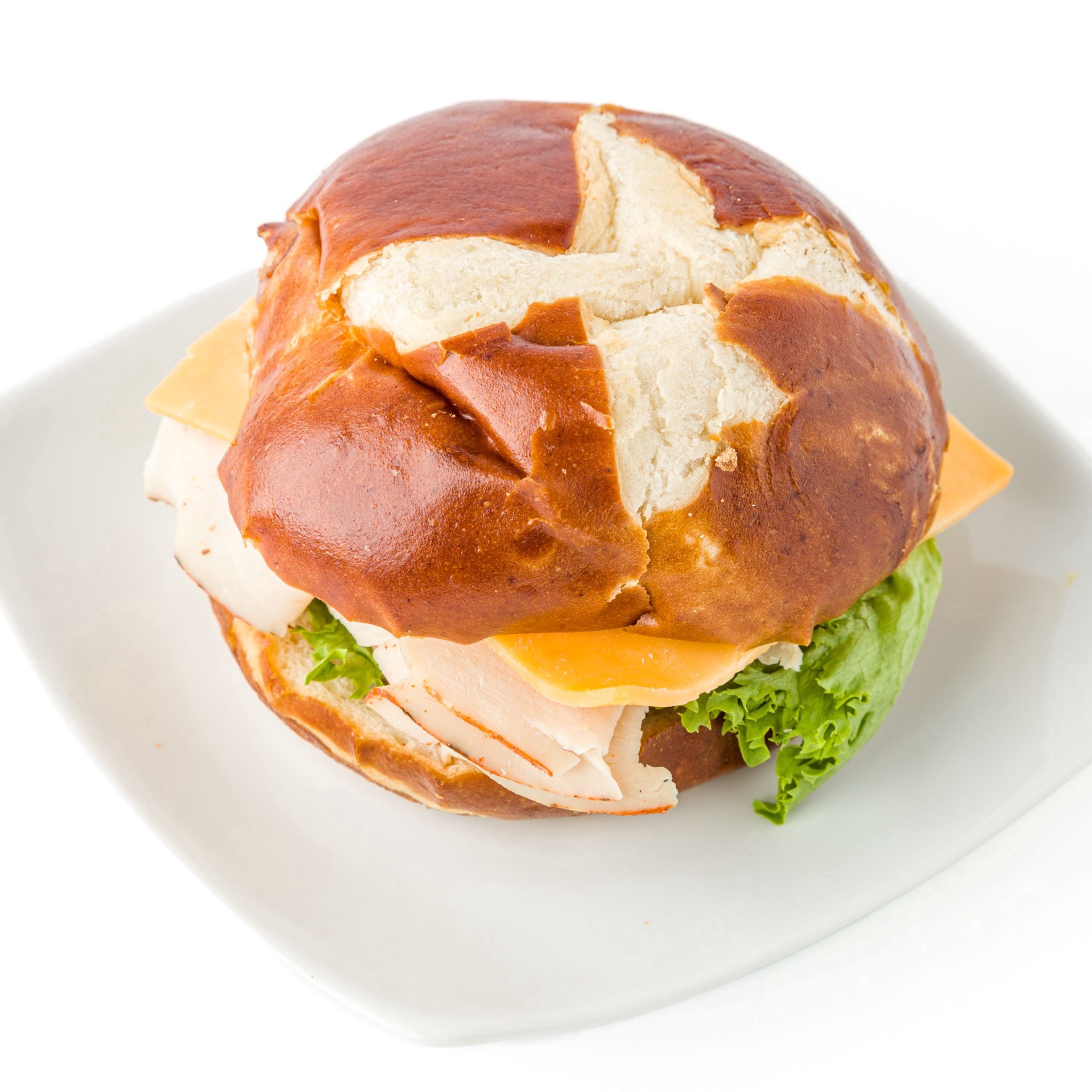 slide 1 of 1, Turkey On Pretzel Roll 1/2,
