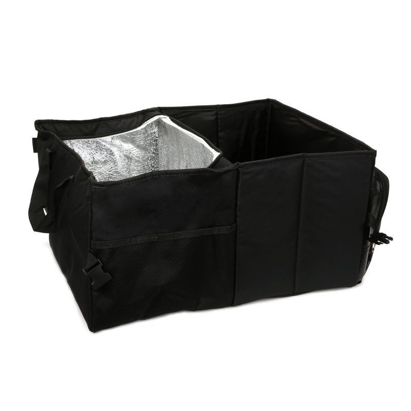 The Turtle Wax 2 Main Section Trunk Organizer with Cooler has a universal design for all cars, SUVs, minivans, trucks, and boats. The trunk organizer features a large built-in cooler and sturdy sidewa…