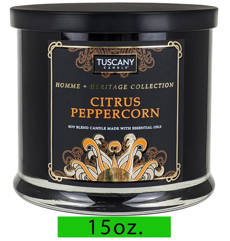 slide 1 of 3, Tuscany Candle Homme + Heritage Collection Soy Candle, Citrus Peppercorn, 15 oz