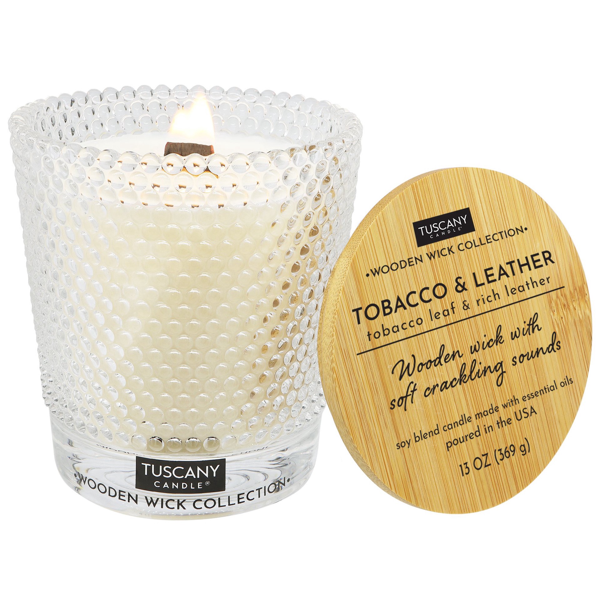 Tuscany Candle Wooden Wick Collection Scented Soy Candle - Tobacco & Leather