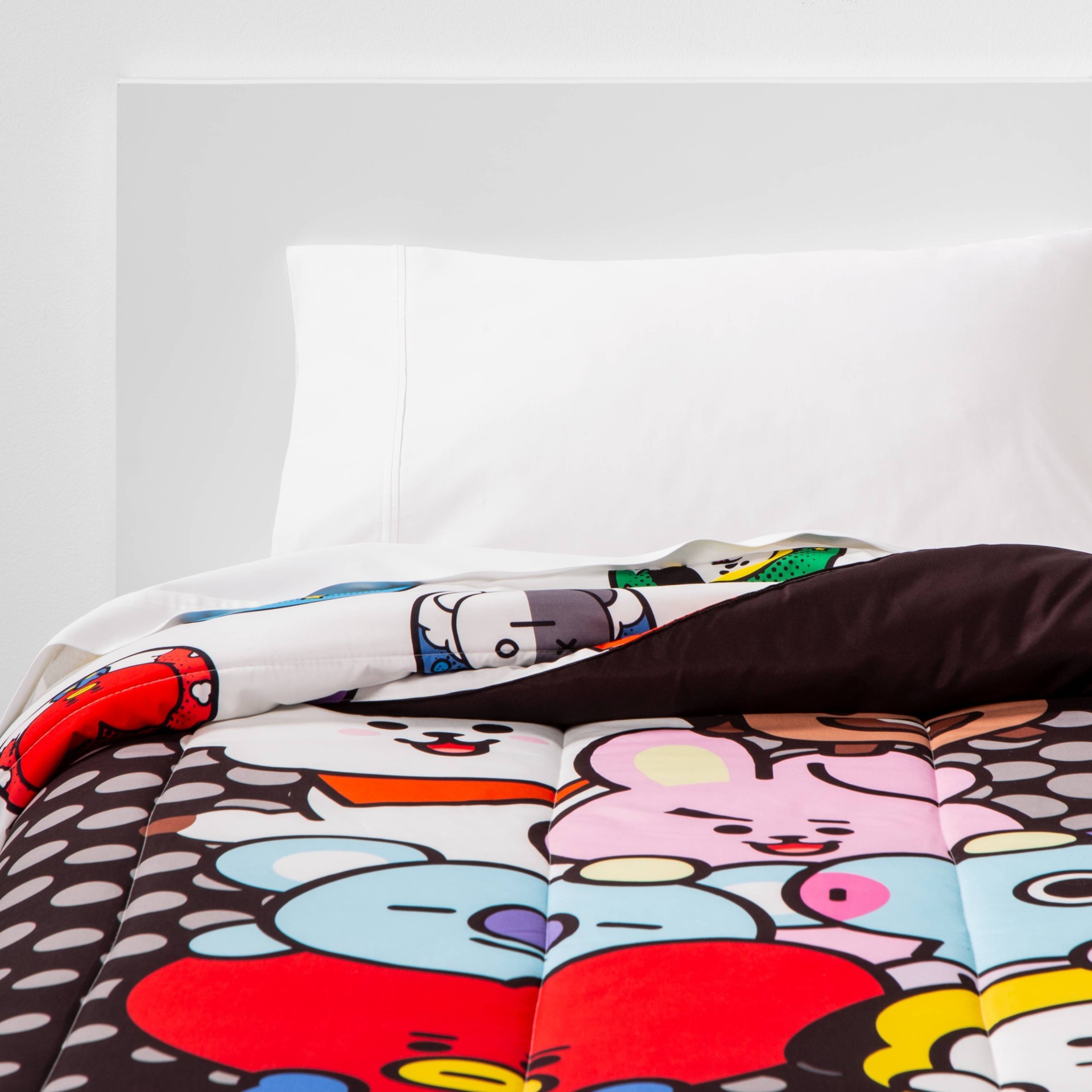 Hailing from BT! This twin size comforter features all the characters from BT21! Featuring: Koya, RJ, Shooky, Mang, Chimmy, TaTa, Cooky and Van! This comforter is 100% reversible so your bedroom can h…