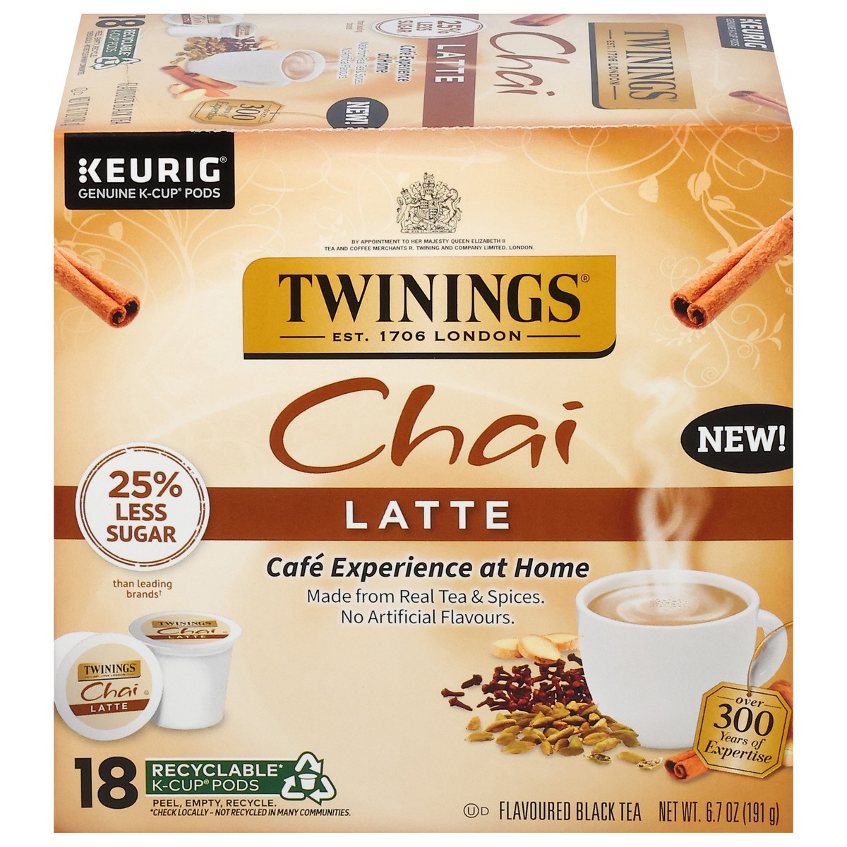 In the Twinings Chai Latte K-Cup Pods for Keurig, Twinings blends to perfection the finest black teas with the sweet and savoury spice flavours of cinnamon, cardamom, cloves and ginger to give you a l…