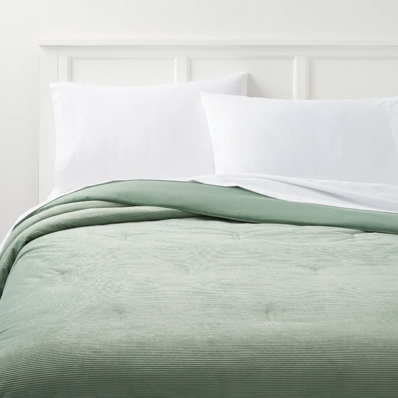 Twin/Twin Extra Long Corduroy Plush Comforter Sage Green - Room Essentials™