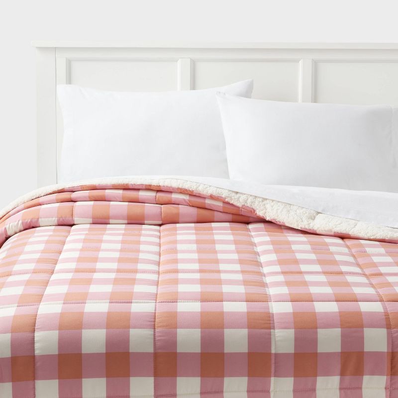Escape to your dreamland in cozy comfort with the Faux Shearling Washed Microfiber Reversible Comforter from Room Essentials™. Boasting a super-soft, washed quilted fabric on one side and plush faux s…