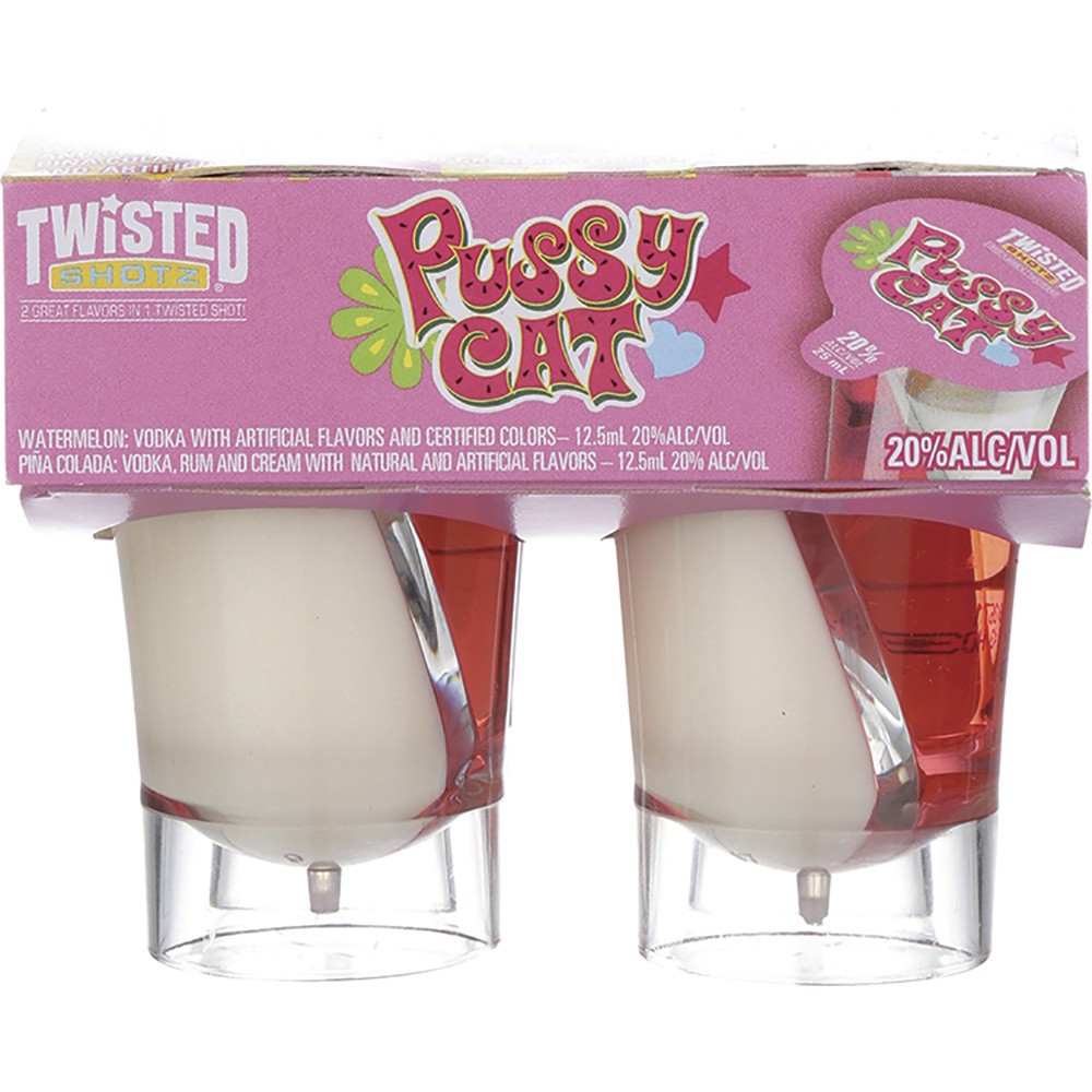 What's New Pussycat! A groovy twist of sassy watermelon and smooth pina colada that will turn your evening from drab to fab! Our newest edition, created by a Twisted Shotz super-fan, is the cats meow.