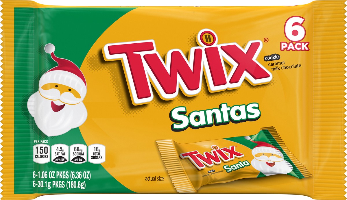 Get in the holiday spirit this season with TWIX Original Santa Cookie Bar. Each candy bar is made with the classic TWIX Candy ingredients\, including real milk chocolate\, crunchy cookie and creamy ca…