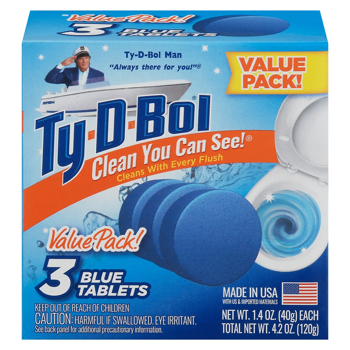 Ty-D-Bol Man - Always there for you. Clean you can see. Cleans with every flush. 3 Blue tablets. Powerful detergents help keep your toilet bowl clean in-between scrubbing. Blue detergents provide a co…