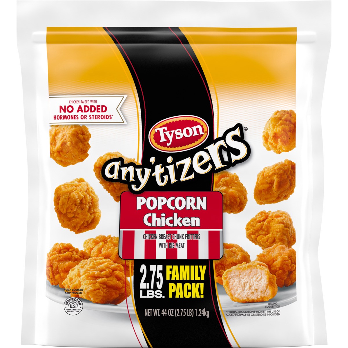 Take snack time to the next level with a Tyson Any'tizers Popcorn Chicken Family Pack. Our bite sized chicken chunks are made with boneless skinless chicken breasts, then breaded and seasoned to perfe…