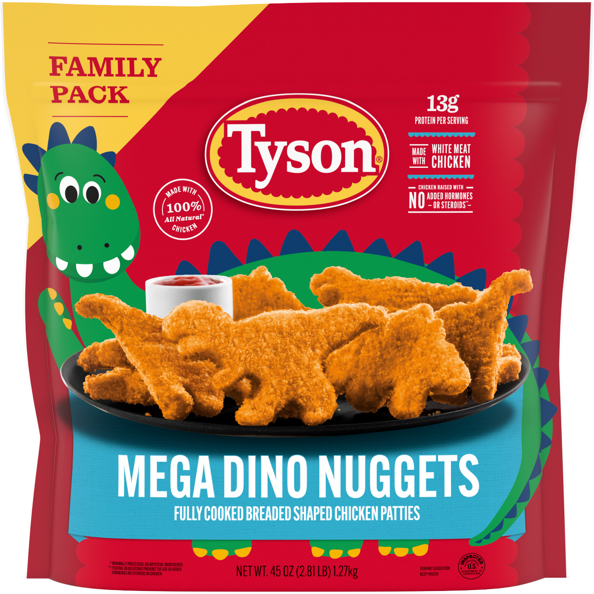 Make mealtime a roaring success with our Tyson Mega Dino Nuggets. Packed in a convenient 2.81 lb bag, our nuggets are not only fun shaped but also filled with goodness. Each serving provides 13g of pr…