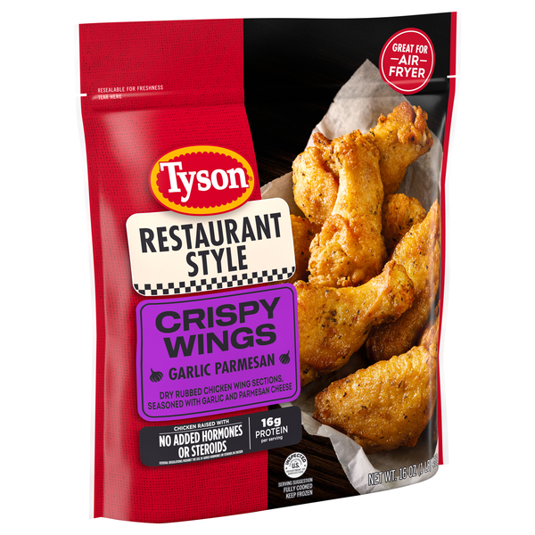 Crispy on the outside, tender on the inside. Tyson Frozen Garlic Parmesan Crispy Wings have the irresistible crunch and savory flavor you crave. Seasoned to perfection, our dry-rubbed wings have all t…