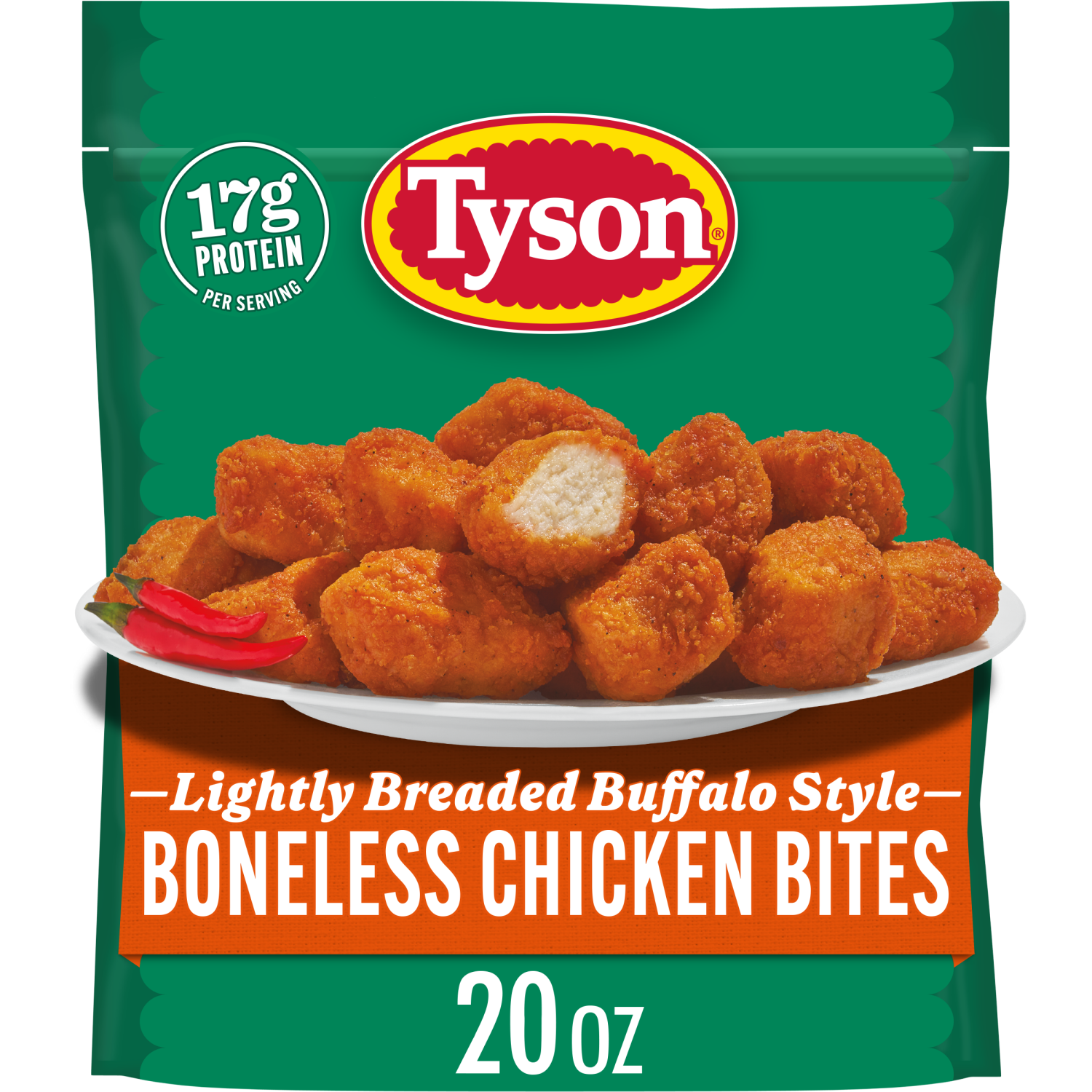 Spice up snack or mealtime with our Tyson Lightly Breaded Buffalo Style Boneless Chicken Bites. Each 20 oz bag is packed with mouth-watering, fully cooked chicken bites that are flavorful and convenie…