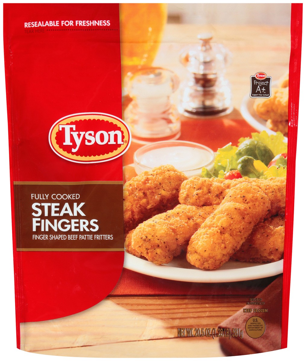 Take snack time to the next level with Tyson Fully Cooked Breaded Steak Fingers. A savory take on our classic chicken fingers\, these handheld bites are breaded and seasoned to perfection for a deliciā¦