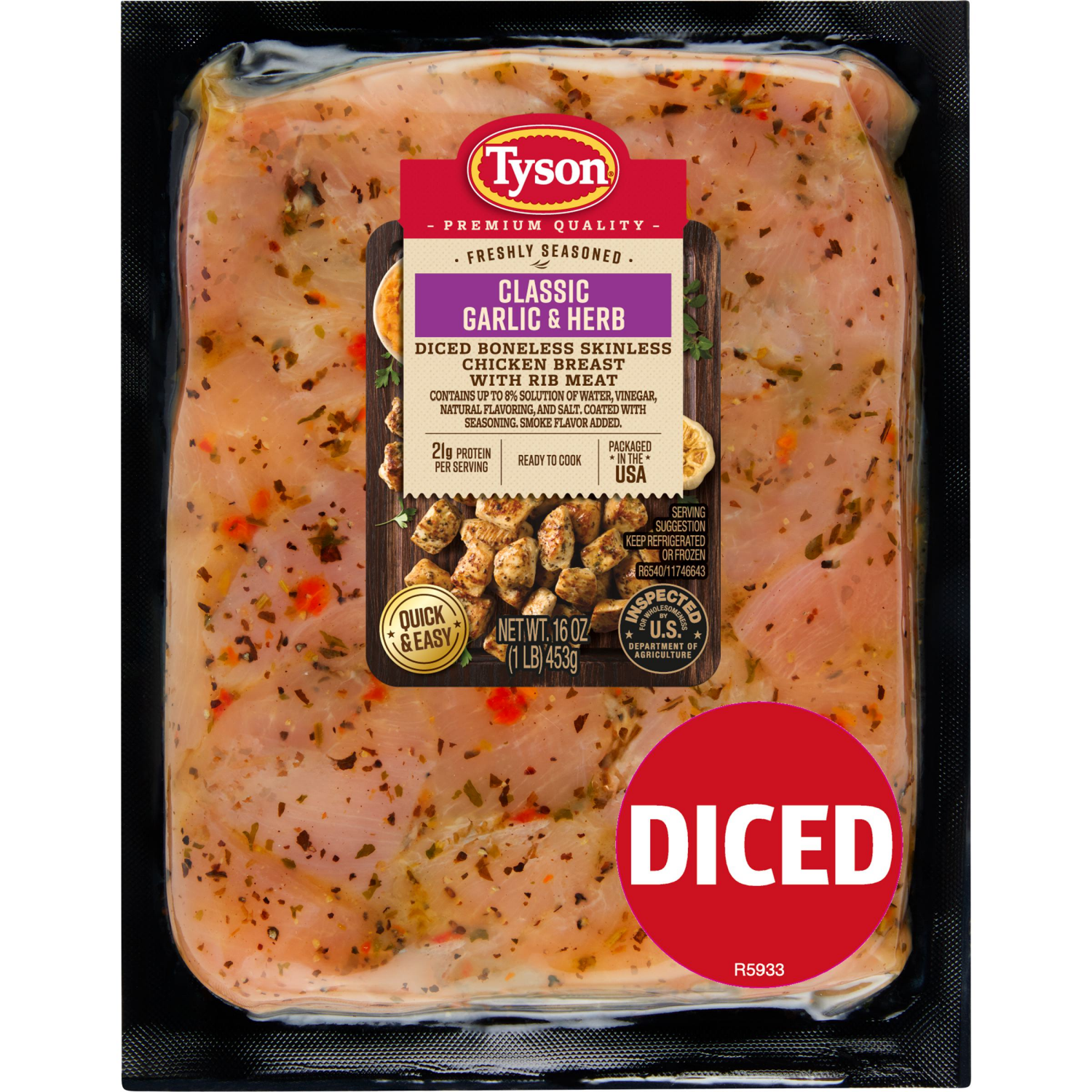 Tyson Garlic & Herb Diced Chicken Breast 16 oz