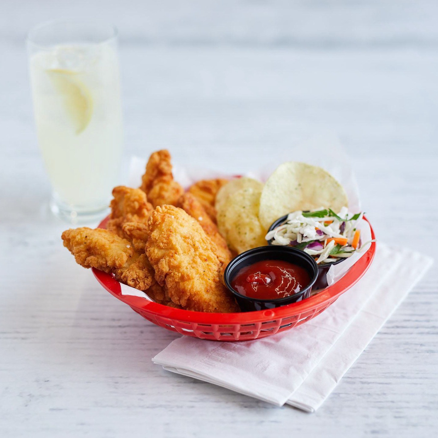 Portioned chicken tenders with rib meat, water, salt, sodium phosphates, seasoning [flavors, maltodextrin, sugar, salt, vegetable stock (carrot, onion, celery), garlic powder], modified food starch. B…