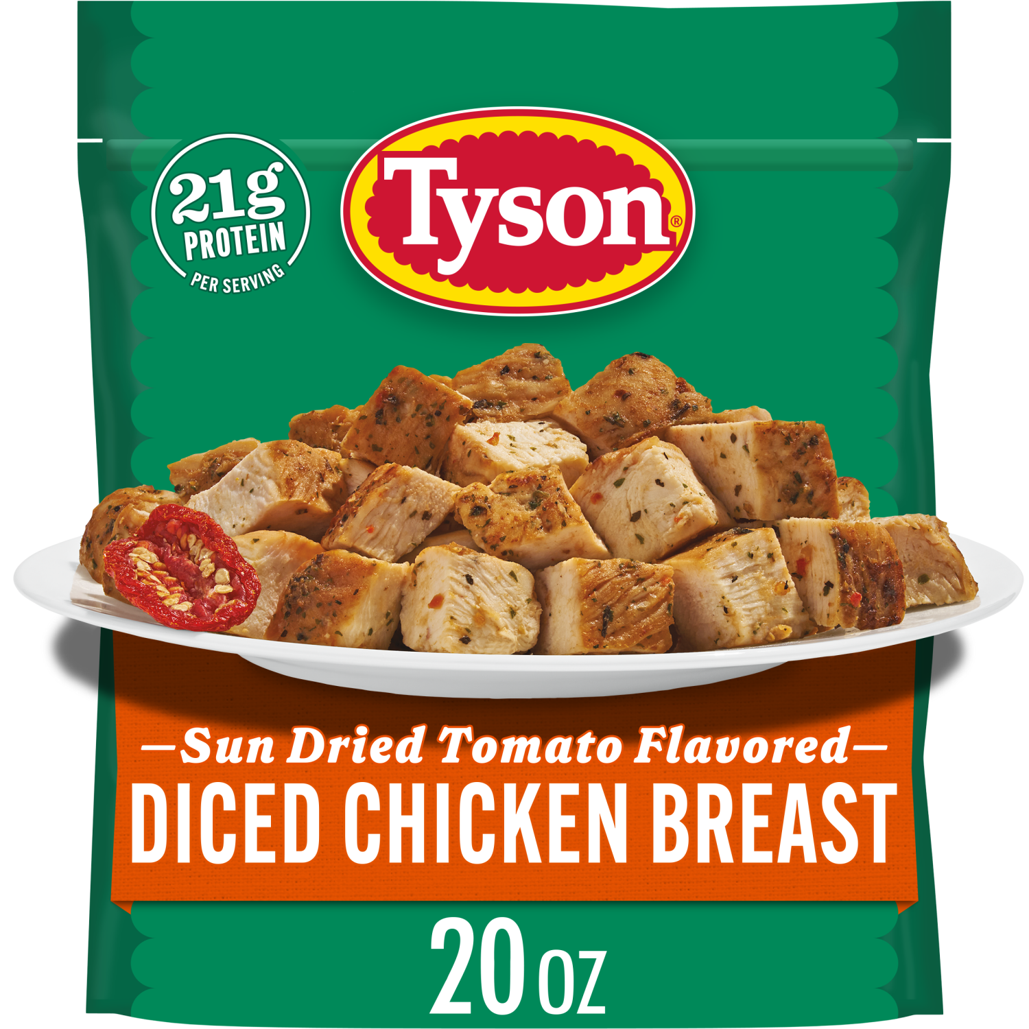 Maximize your meals with Tyson Sun Dried Tomato Flavored Diced Chicken Breast. Our convenient 20 oz bag is packed with fully cooked, boneless, skinless chicken rib meat with sun-dried tomato seasoning…