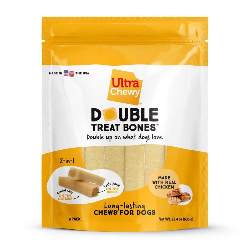 Ultra Chewy Double Bones Chicken Flavor Dry Dental Dog Treats Value Pack - 22.4oz