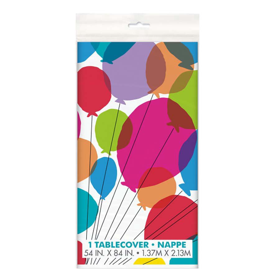 slide 1 of 1, unique Balloons & Rainbow Birthday Plastic Table Cover, 54 in x 84 in