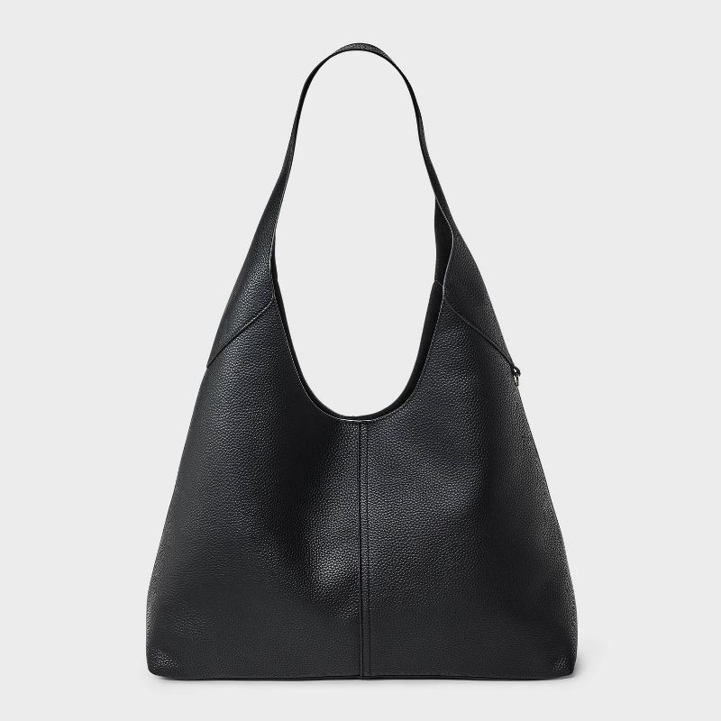 This Oversized Slouchy Shoulder Bag from Universal Thread™ blends effortless, laid-back looks with convenience while offering ample room for your daily essentials. With its black faux leather exterior…