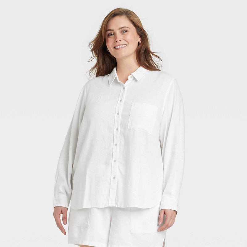 Elevate your wardrobe with this Long-Sleeve Collared Linen Button-Down Shirt from Universal Thread™. Crafted from a midweight linen-rayon blend, this solid-color shirt features a collared neckline, fu…