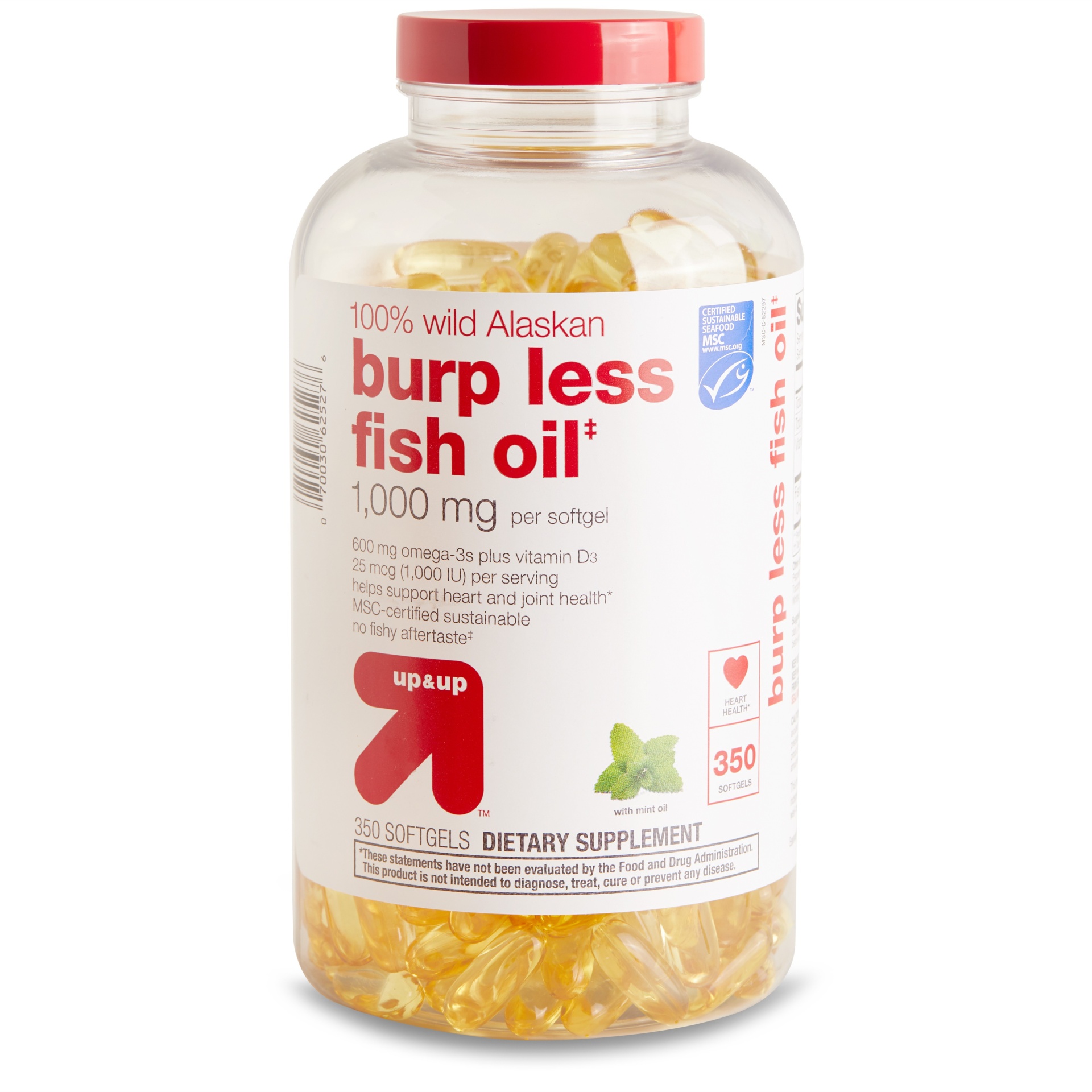 Burp Less Fish Oil 1000 mg Softgels from up & up deliver support for a healthy heart and joints. They have an enteric coating that helps control fish burps. Quality needs priced to please. With up & …