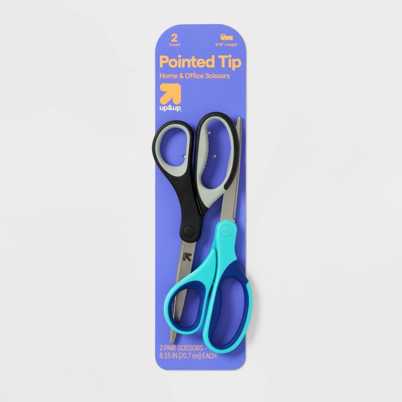 Outfit both your home and office with an everyday essential when you add a pack of Home and Office Scissors from up&up™ to your cart. This pack includes two scissors fitted with stainless steel, corro…
