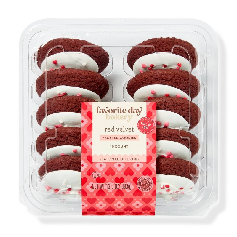 Enhance your holiday celebrations with these 10-Count Valentine's Red Velvet Frosted Cookies from Favorite Day™. These sweet treats come in Valentine's-inspired colors, making them great for exchangin…