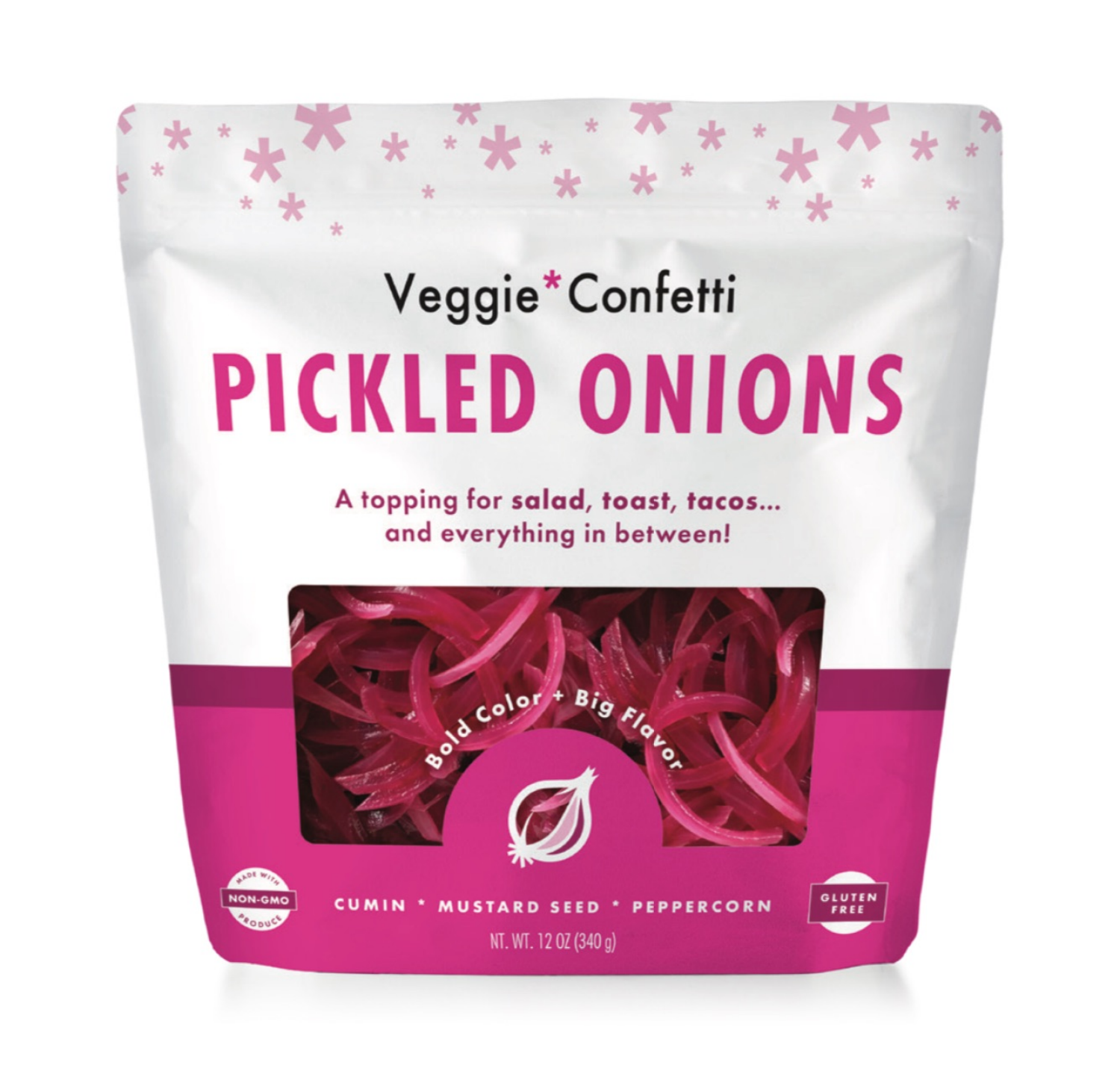 Red Onions, Distilled White Vinegar, Apple Cider Vinegar, Water, Sugar, Salt, Mustard Seeds, Peppercorns, Cumin.
