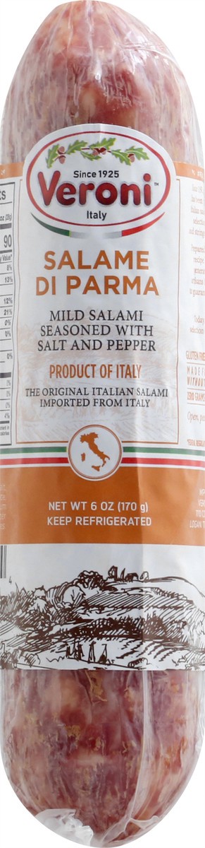 Mild salami seasoned with salt and pepper. Zero grams transfat per serving. Gluten free. Lactose free. Since 1925. The original Italian salami imported from Italy. Since 1925, the Veroni family has be…