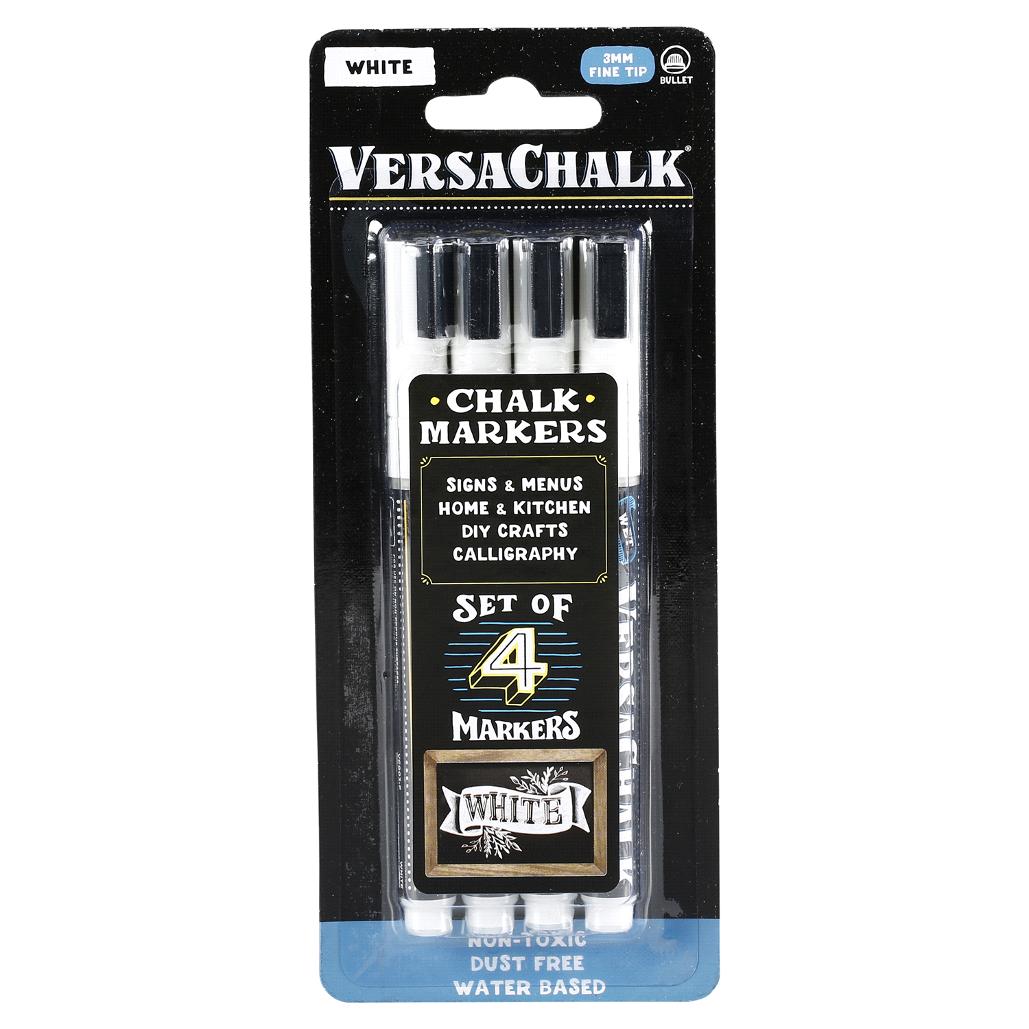 VersaChalk White Liquid Chalk Markers, Set of 4 - 3mm Tip