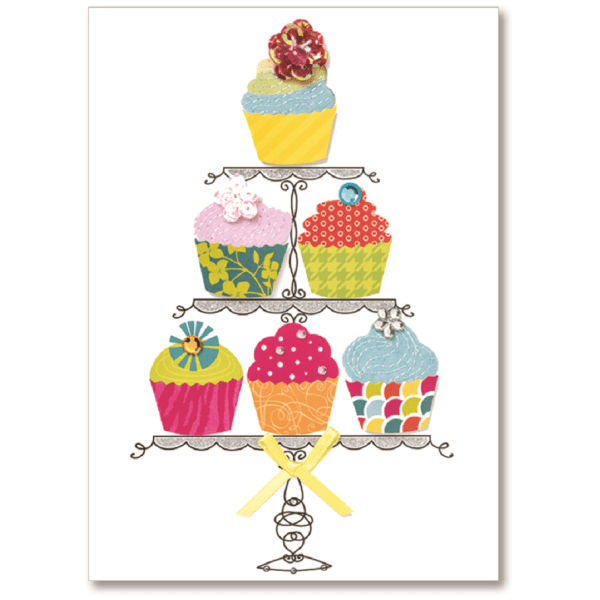 Viabella Birthday Greeting Card With Envelope, Six Cupcakes, 5" X 7"