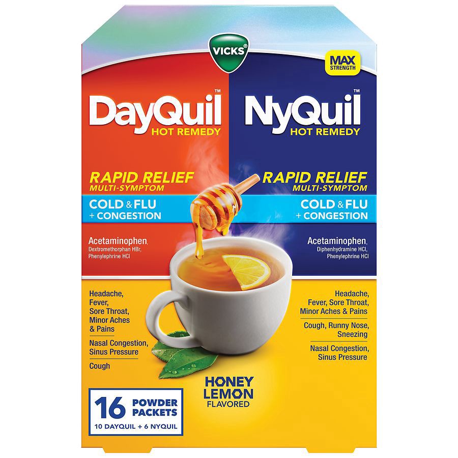 From the world's #1 selling OTC cough and cold brand, Vicks DayQuil and NyQuil Hot Remedy Cold & Flu + Congestion Medicine provide fast, powerful relief for your worst cold and flu symptoms. With this…
