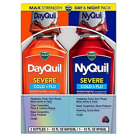 Vicks Dayquil Nyquil Severe Cold Flu & Congestion Medicine Pack - 2-12 Fl. Oz.