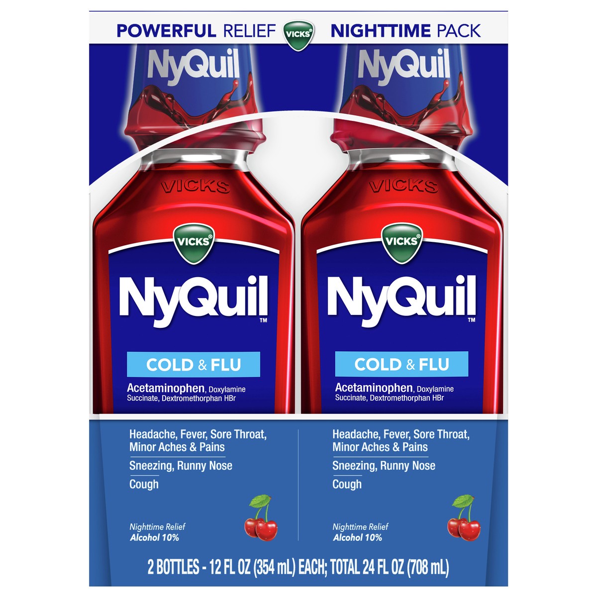 From the world's #1 selling OTC cough and cold brand, Vicks NyQuil Cold & Flu Liquid provides fast, powerful relief for your worst cold and flu symptoms. Get the NyQuil you trust in a great-tasting Ch…