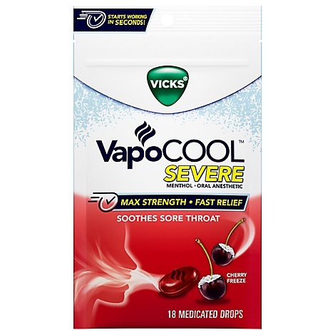 slide 1 of 1, Vicks VapoCOOL Cherry Freeze Severe Medicated Drop - 18 Count, 18 ct