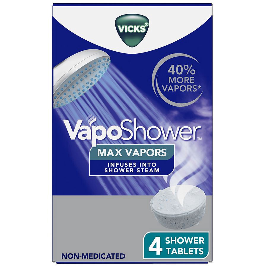 Vicks VapoShower MAX shower steamer tablets infuse into your shower steam to deliver the most intense non-medicated Vicks Vapors* you've ever experienced. Specially formulated with 40% more vapors*, V…
