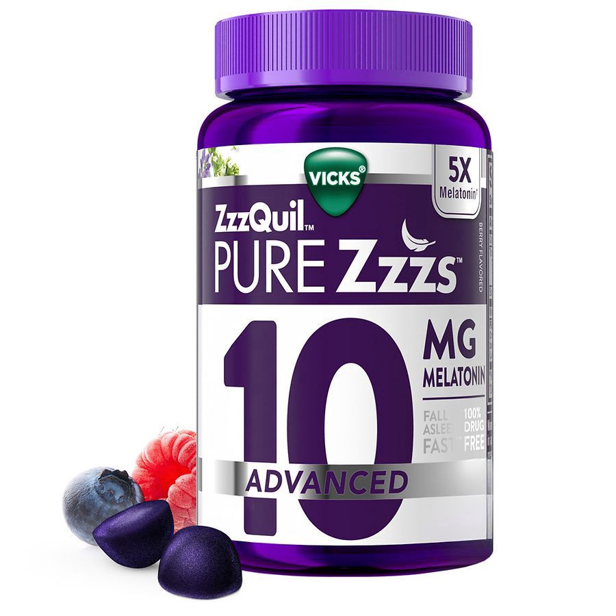 ZzzQuil PURE Zzzs Advanced 10mg Melatonin gummies work naturally with your body's natural sleep cycle.* If you've been struggling with occasional sleeplessness, whether it's caused by a schedule chang…