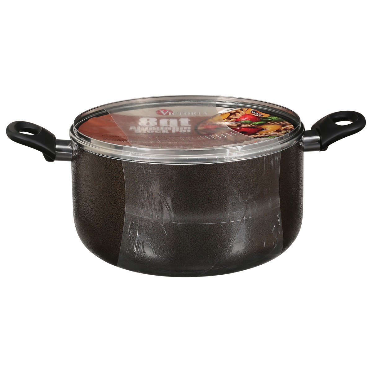 Constructed from durable aluminum. Double riveted iron handles provide a comfortable, safe and secure grip. Tight-fitting glass lid seals in heat and moisture. Perfect boiling, soups, stews, pasta, an…
