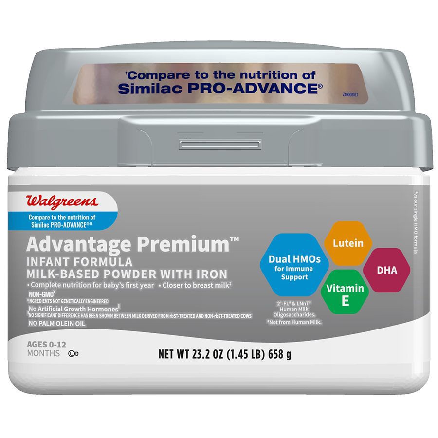 Compare to the nutrition of Similac Pro-Advance Infant Formula. Crafted to be closer to breast milk, and enhanced with double the HMOs versus our prior single HMO formula, Walgreens Advantage Premium …