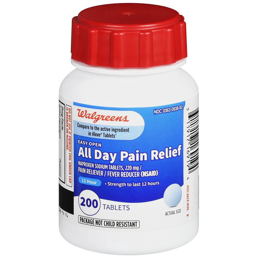 Compare to the active ingredient in Aleve Tablets^^ Easy open Strength to last 12 hours Gluten free. Walgreens Pharmacist Recommended^ Learn more about Walgreens brand products ^Our pharmacists recomm…