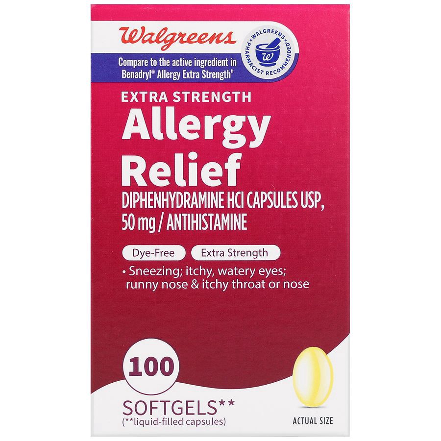 Compare to the active ingredient in Benadryl Allergy Extra Strength^^ Sneezing; itchy, watery eyes; runny nose & itchy throat or nose Dye-free Walgreens Pharmacist Recommended^ Learn more about Walgre…