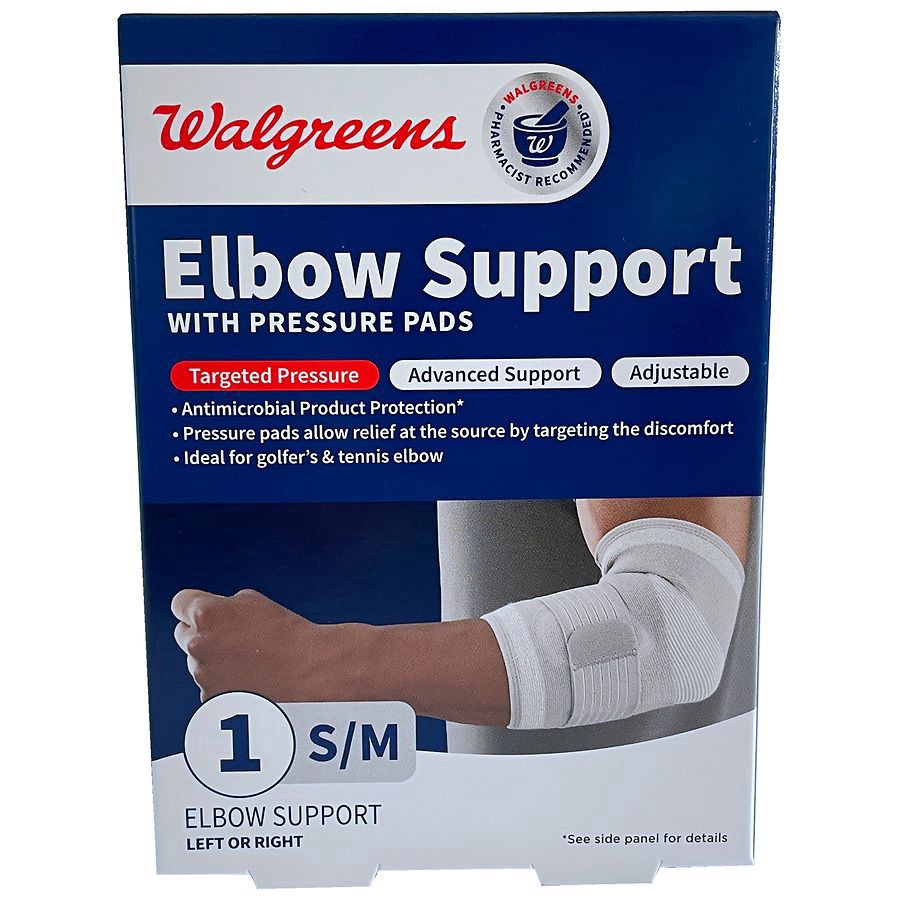 Adjustable Antimicrobial Provides therapeutic compression warmth. Ideal for golfers tennis elbow The Walgreens Elbow Support with Pressure Pads is designed to provide optimal support and stabilizati…