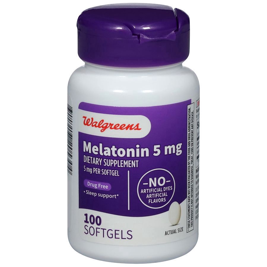 slide 5 of 5, Walgreens Melatonin Softgel 5mg, 100 ct