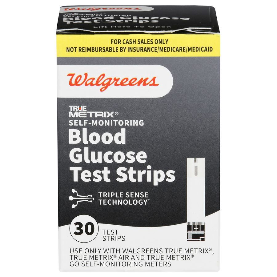 New FOR CASH SALES ONLY Not Reimbursable by InsuranceMedicareMedicaid SelfMonitoring Blood Glucose Test Strips Tiny Blood Sample Easy to Handle Diabetes Friendly Triple Sense Technology Walgreens Pha…